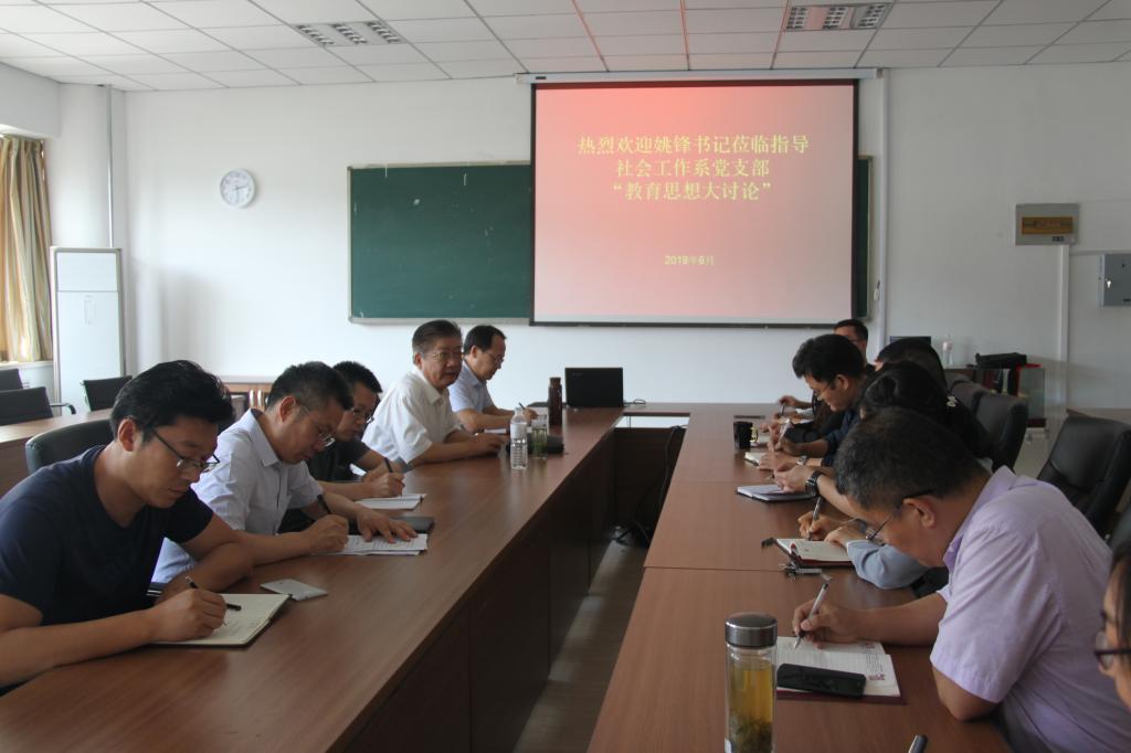 6月11日下午,校党委常委、纪委书记姚锋参加永利集团88304社会工作系党支部教育思想大讨论,与支部全体党员一道就社会工作专业的建设发展问题展开深入研讨。永利集团88304领导班子成员列席讨论。