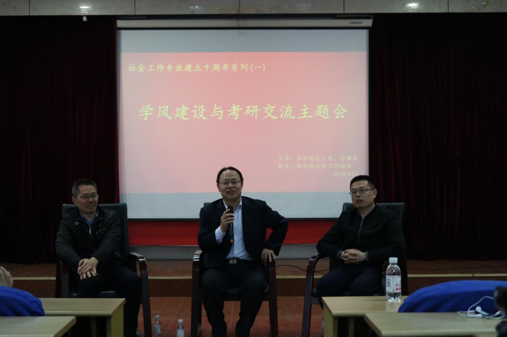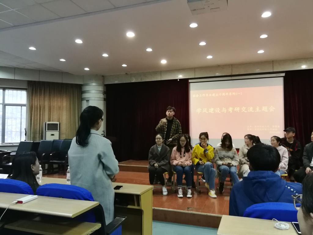 此优秀成绩先后多次被中华全国学联、半岛都市报等多家校内外媒体平台报道,掀起了一股考研热潮。为推进学风建设,促进经验交流,以此为契机,由社会工作系联合永利集团88304分团委主办、社会工作协会承办的学风建设与考研交流主题会于4月23日在模拟法庭召开。