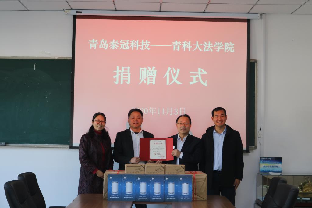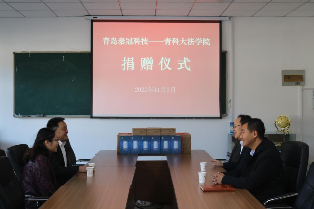 捐赠仪式上,王金堂代表学院表达了对青岛泰冠科技有限公司的感谢,为泰冠科技有限公司颁发了捐赠证书。路积胜称希望双方加强双方合作,共同为教育教学事业发展添砖加瓦。
