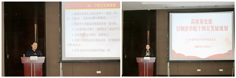 11月28日晚,全体教职工在教育基地开展了“以高质量党建引领永利集团88304十四五发展规划”的研讨会。会上,院长王金堂从十三五规划完成情况、经验和问题、下一聘期目标、十四五规划目标四个方面详细讲解并部署了学院教学、科研、学科和社会服务方面的规划和目标。党总支书记李卉鼓励全体教职工尤其是党员教师充分发挥先锋模范作用,敢于担当作为,积极带头认领学院下一聘期目标任务,激发了参会教师的热情和斗志。