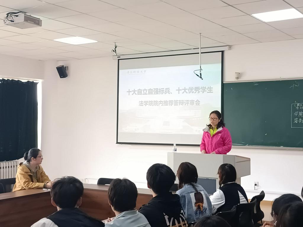 为全面落实立德树人根本任务,深入挖掘和宣传表彰大学生先进典型,营造自尊、自信、自立、自强的校园励志氛围,充分发挥先进典型的示范引领和激励作用,4月20日下午,永利集团88304于弘毅楼C-406举办“十大自立自强标兵”“十大优秀学生”院内推荐答辩评审会,学院党总支书记李卉,学院学工办主任、团委书记付继航,学院评审委员会成员,各年级辅导员及学生代表参加,评审会由辅导员李怡然主持。