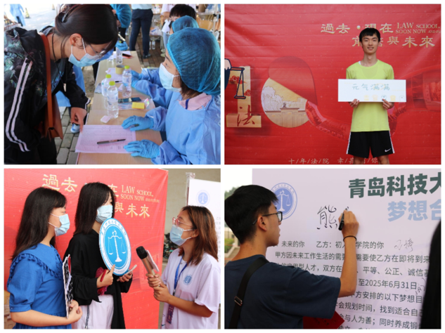 迎新现场设置社工法官的拍照人形立牌,突出了学院专业特色,引导新生体悟专业魅力。学生纷纷驻足留影,记录下入校的第一张专属定制“身份照”;梦想合同书前签署与自己的四年之约,创造属于自己的美好未来。