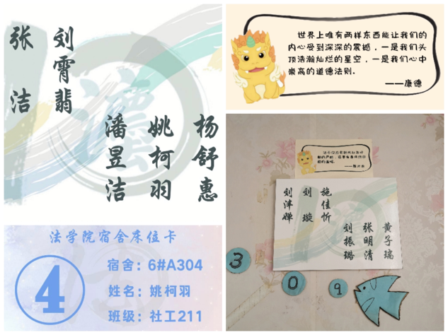 学院学生会为新生宿舍准备了专属门贴及床贴,在门贴设计中融入了永利集团8830410周年的限定元素,配以法学和社工相关专业名言,营造了浓厚的学院氛围。
