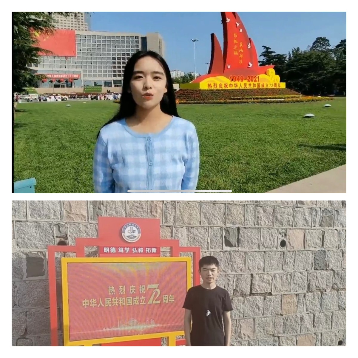 拳拳盛意,倾尽于此。在“国庆对党说,薪火永相传”的视频拍摄活动中,同学们纷纷到校内外的经典红色打卡地进行视频录制,在欣赏祖国锦绣山河的同时将自己心中想对祖国和党说的话真情吐露,展现了同学们一颗又一颗拳拳爱国之心。