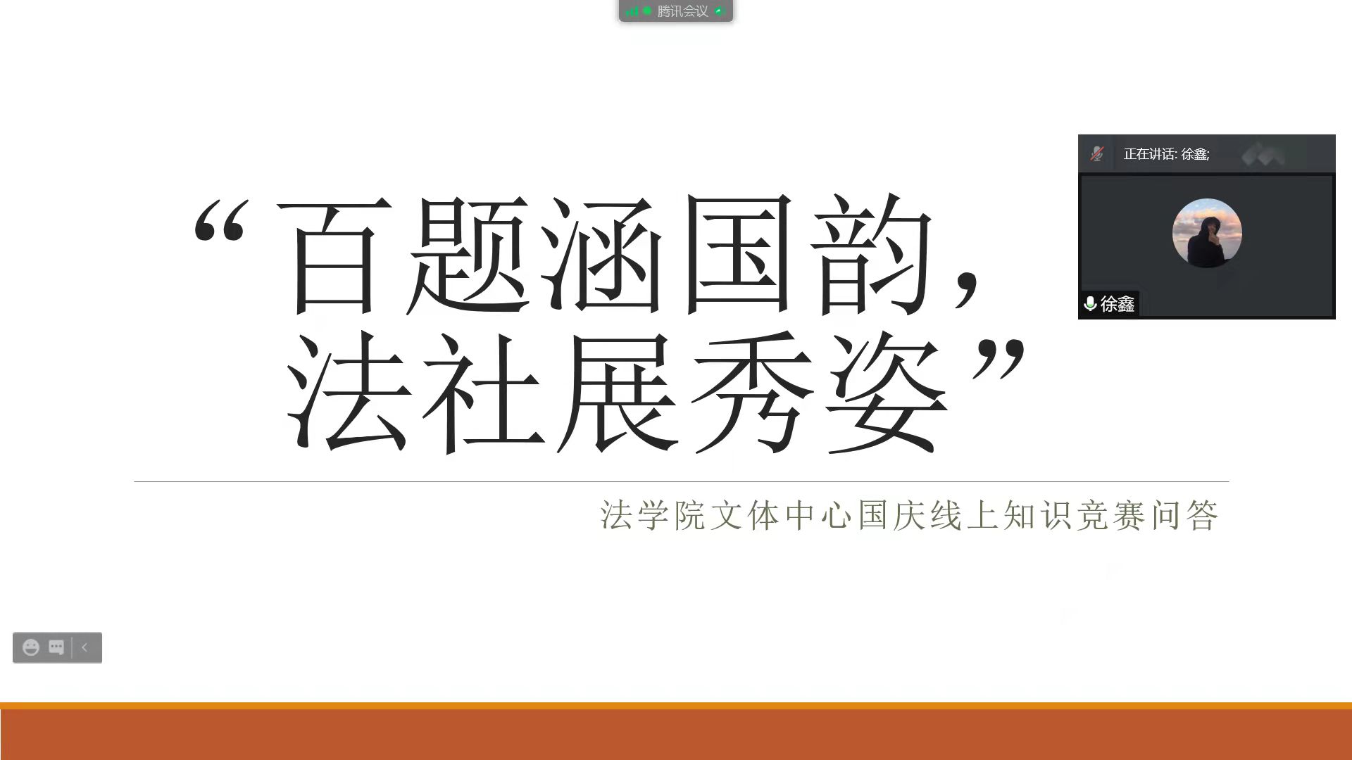 激情问答,法显秀姿。10月3日晚,永利集团88304在线上开展了主题为“百题涵国韵,法社展秀姿”的知识问答比赛。同学们积极参加比赛,踊跃回答国庆相关知识。这次比赛不仅拓展了同学们对国庆节的认知,更进一步激发了同学们的爱国情怀。