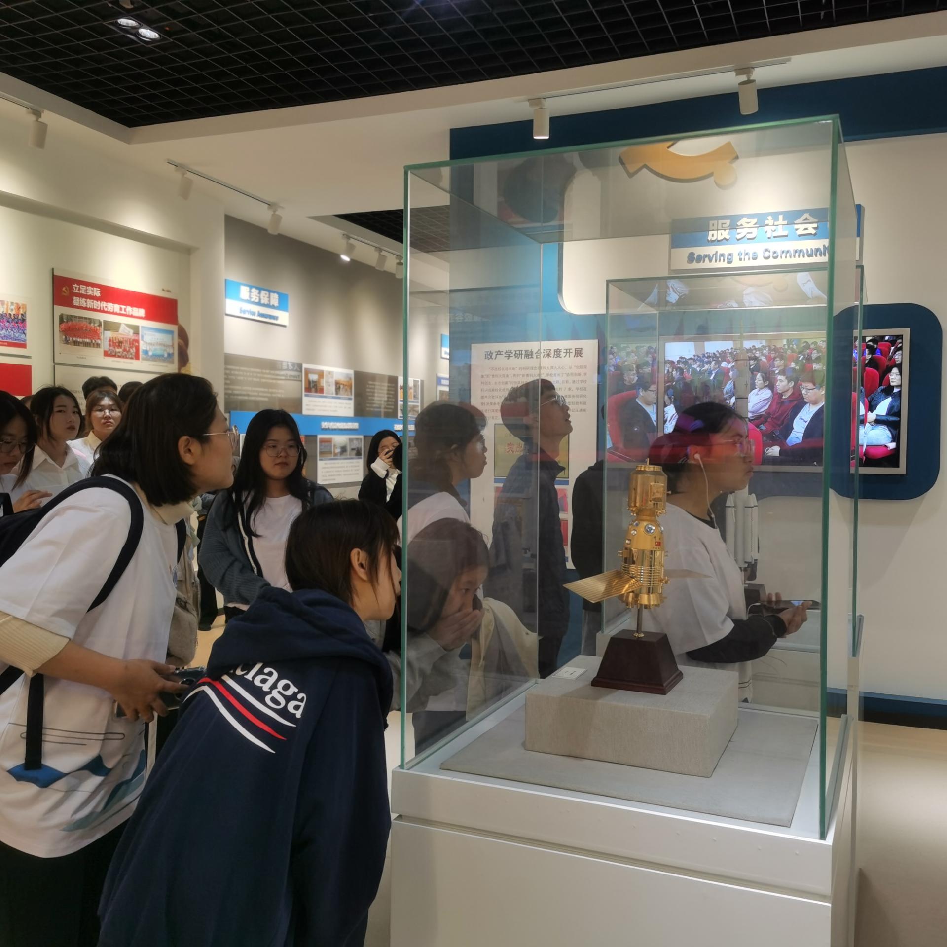 在校史馆讲解员的带领下,新生了解了学校由沈阳轻工业高级职业学校到永利官网,建立三地五校区的发展史。通过一张张照片,一幕幕真实历史场景的还原,校史馆为新生展现了学校在教学工作、国际交流、团学活动、学科建设、科研成果转化等方面取得的突出成绩,让新生对永利官网有了更详细、更系统的认识。