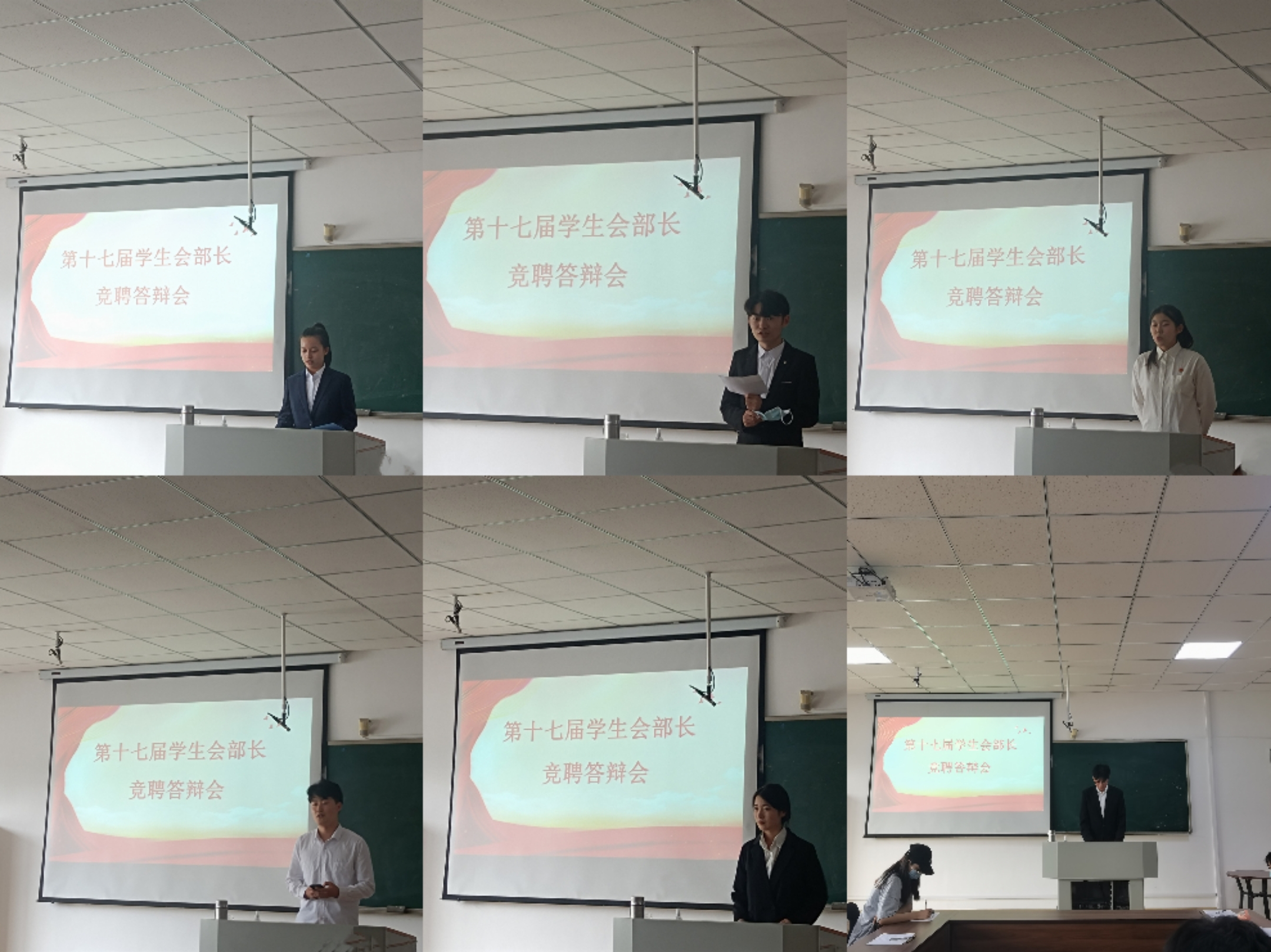 部门候选人依次上台发表竞聘演说,分别从自我介绍、工作经历、自身优势及未来工作展望等方面进行陈述,老师们根据候选人们的工作实绩、竞聘表现等方面进行提问,候选人们认真倾听并礼貌作答。