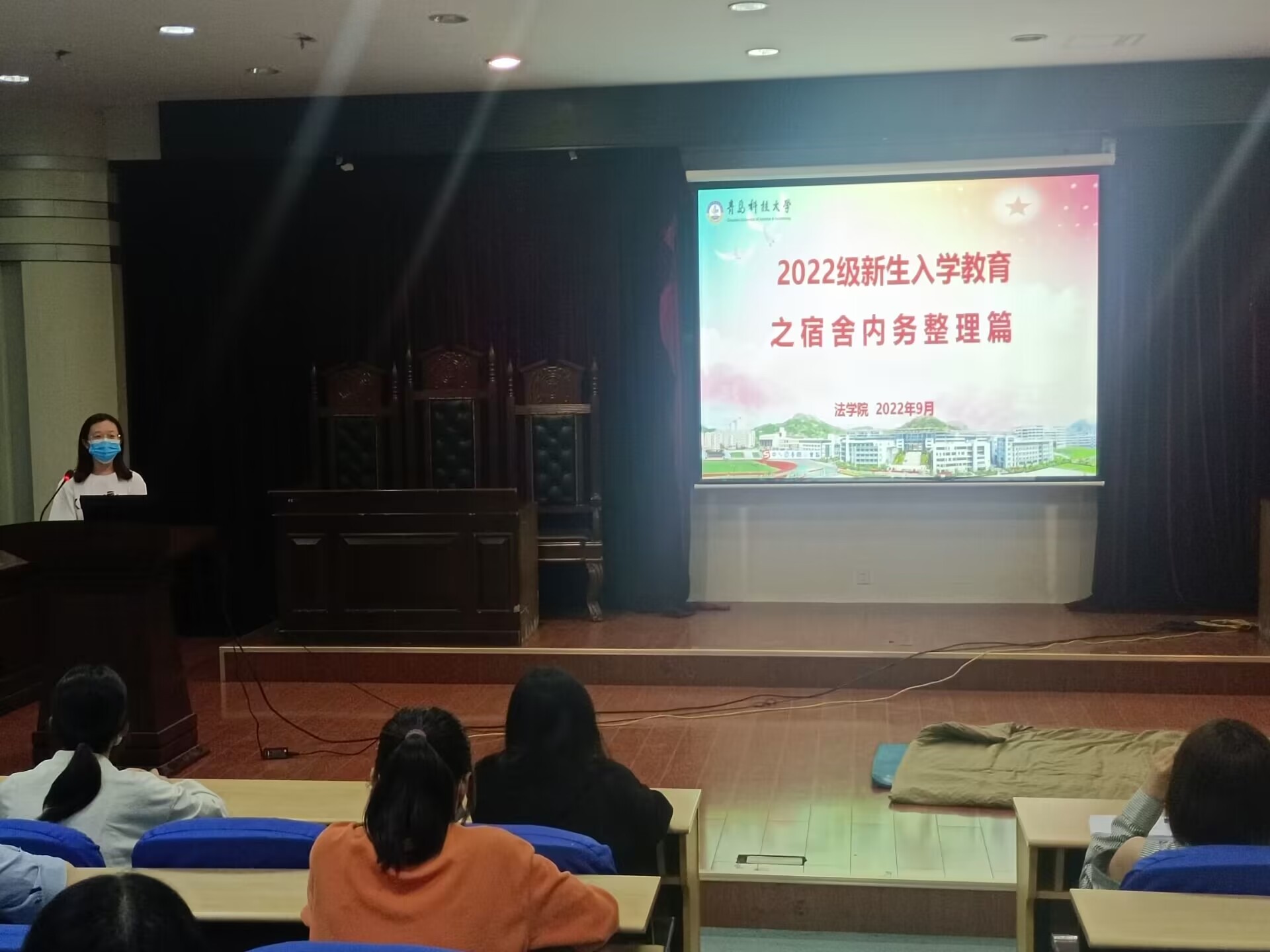 会议伊始,2022级新生辅导员王梦珂老师向全体新生讲解了宿舍内务整理的主要内容和重要意义。宿舍是校园精神文明建设的重要窗口,更是学校进行德育教育实践的重要阵地。此外,王梦珂向全体同学传达了学校《关于关于开展学生宿舍(公寓)环境卫生集中整治工作的方案》通知要求,并详细解读《永利官网学生宿舍(公寓)环境卫生标准》。她勉励同学们要重视宿舍内务的整理,保持良好的宿舍卫生,主动养成良好的生活学习习惯,积极营造整洁、和谐、文明、奋进的宿舍环境。
