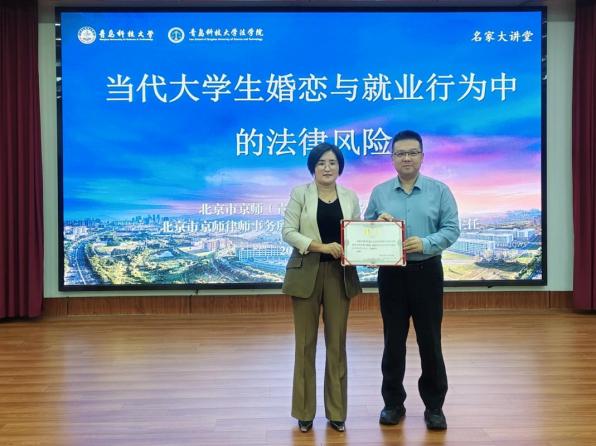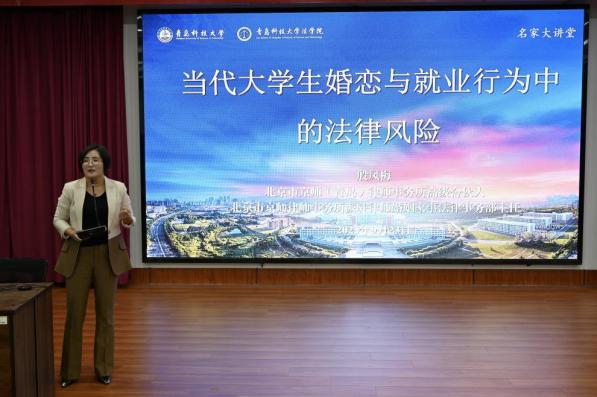 9月23日晚,永利集团88304“名家大讲堂”在弘毅楼A201模拟法庭成功举办。本期讲堂的主题为“当代大学生婚恋与就业行为中的法律风险”,北京市京师(青岛)律师事务所高级合伙人,北京市京师律师事务所派驻律师婚姻家事法律事务部主任殷凤梅受邀主讲。讲座由永利集团88304青年教师余娅楠主持,永利集团88304副院长李鑫出席讲座,永利集团88304研究生代表参加了本次讲座。