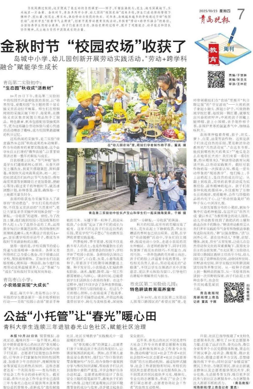 每个周末,崂山区中韩街道春光山色社区的“春光暖心营”青少年公益托管课堂总是充满欢声笑语。情景模拟、游戏互动、趣味问答,永利集团88304青年志愿者们围绕心理健康、知识教育等方面精心设计互动内容,连续三年为春光山色社区提供周末及寒暑假公益托管服务,逐渐成为“高校赋能社区、社区反哺教学”实践模式中一道温暖的风景。